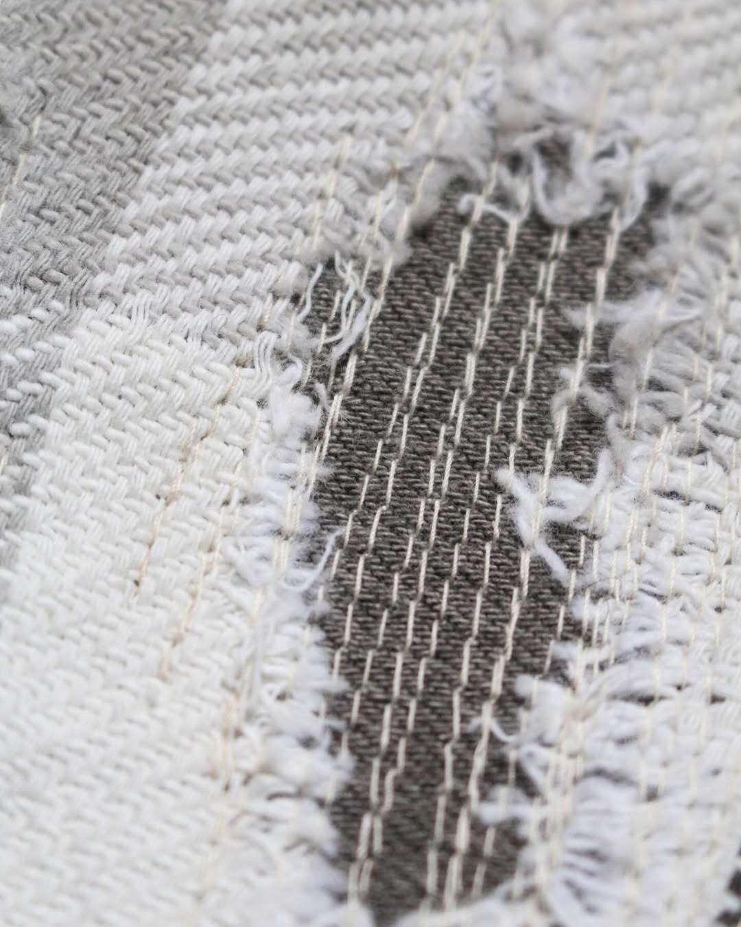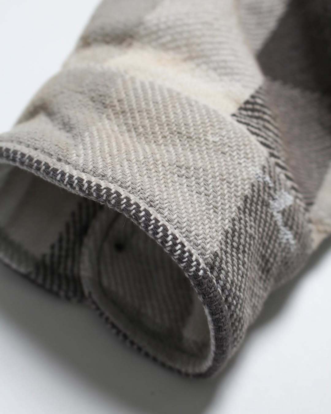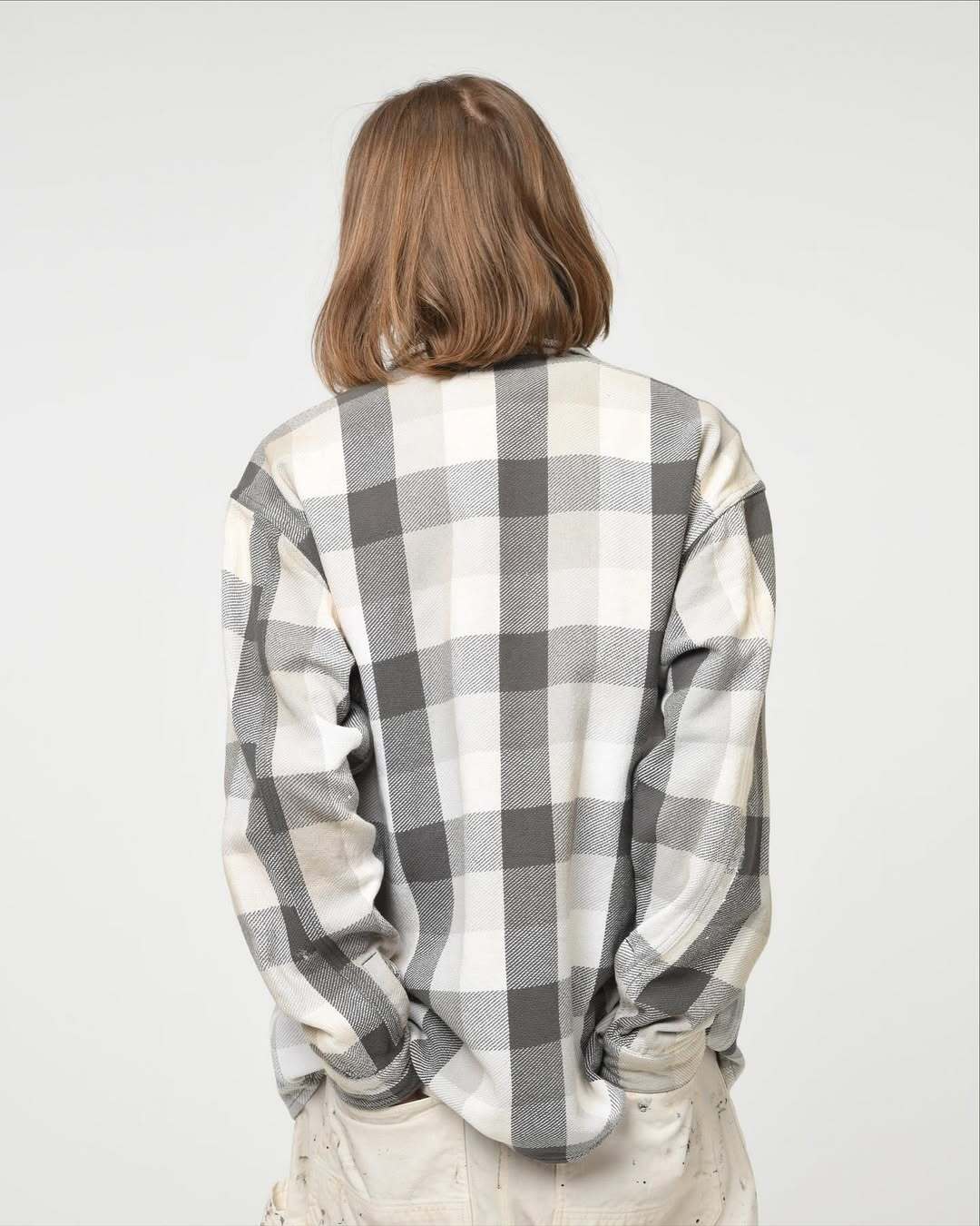 1940〜50年代、限られた有名ワークブランドだけが製作した厚地チェックネルの開襟シャツ。 寒冷地の伐採現場や鉄道作業、アウトドアユースなど、厳しい環境での防寒着として重宝された一着は、耐久性と保温性、そしてブランド独自のディティールが誇りを語っていた。 本作は、その時代特有の重厚なチェックネルをグレー×ホワイトの配色で再現。 肩や袖付けのステッチワーク、ポケット形状などの細部まで当時の意匠を踏襲しつつ、現代的なフィッティングへとアップデート。 着古し、リペアを加えた加工感表現が、ヴィンテージを思わせる存在感を