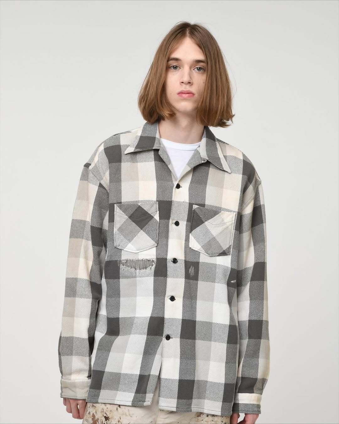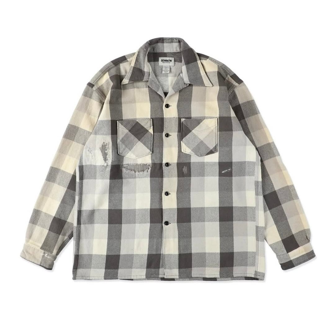 BOWWOW DAMAGED AND STAINED FLANNEL SHIRT