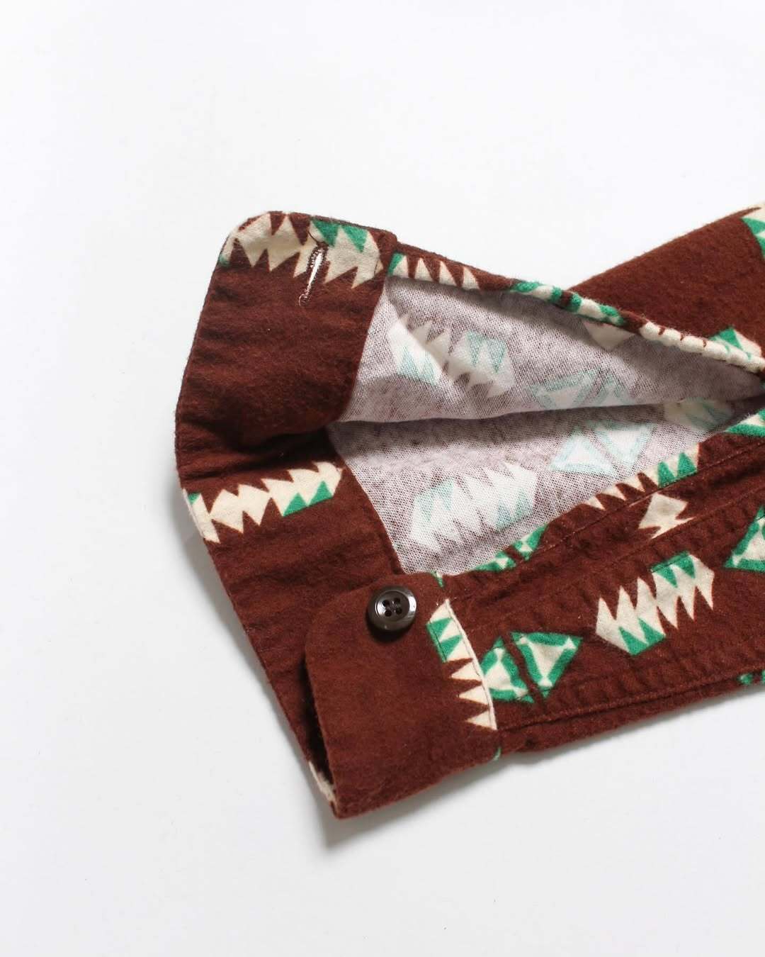 オールドのプリントネルをイメージして仕立てたナバホ柄テキスタイルに、当時のオールドディテールを盛り込んだ90sフィット。無駄とも映る細部の再現にこそ魂を込め、柄のズレまで追い込んだ表情で、懐かしさと今を同居させた新しいプリントネルシャツ。