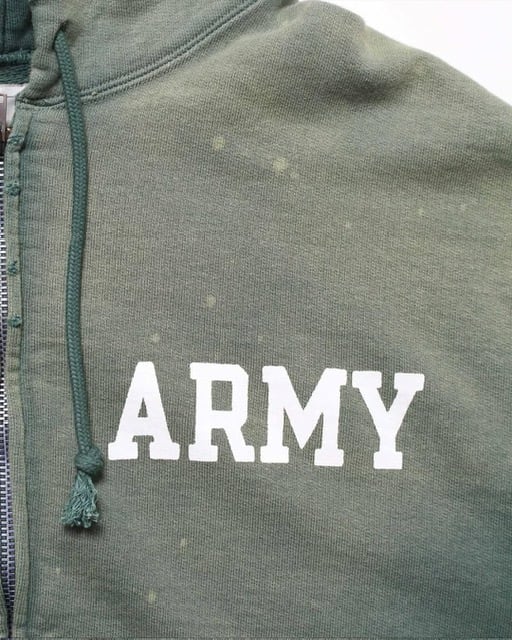US ARMYで稀に見られるハンターグリーンカラーを採用したジップフーディー。