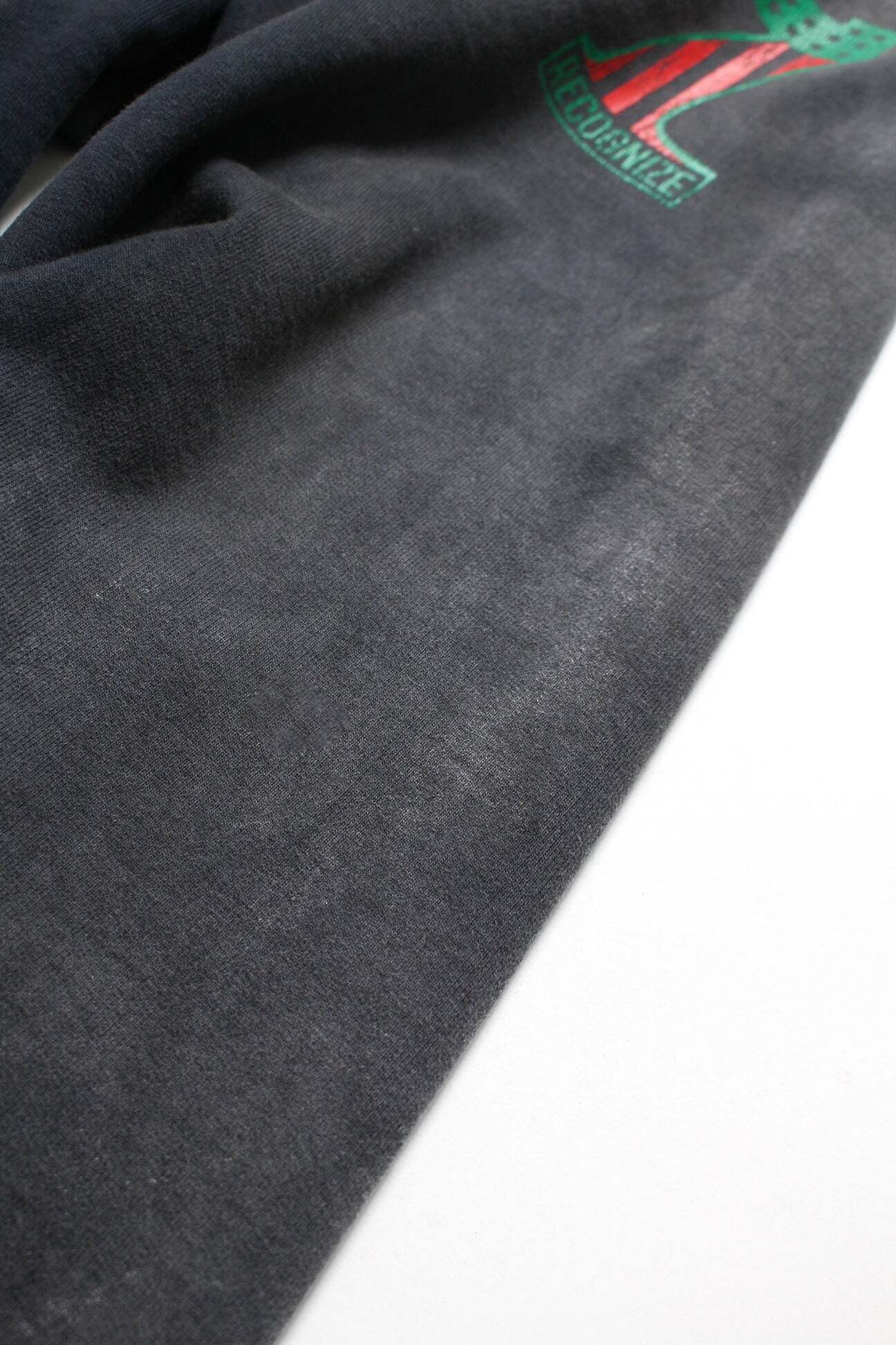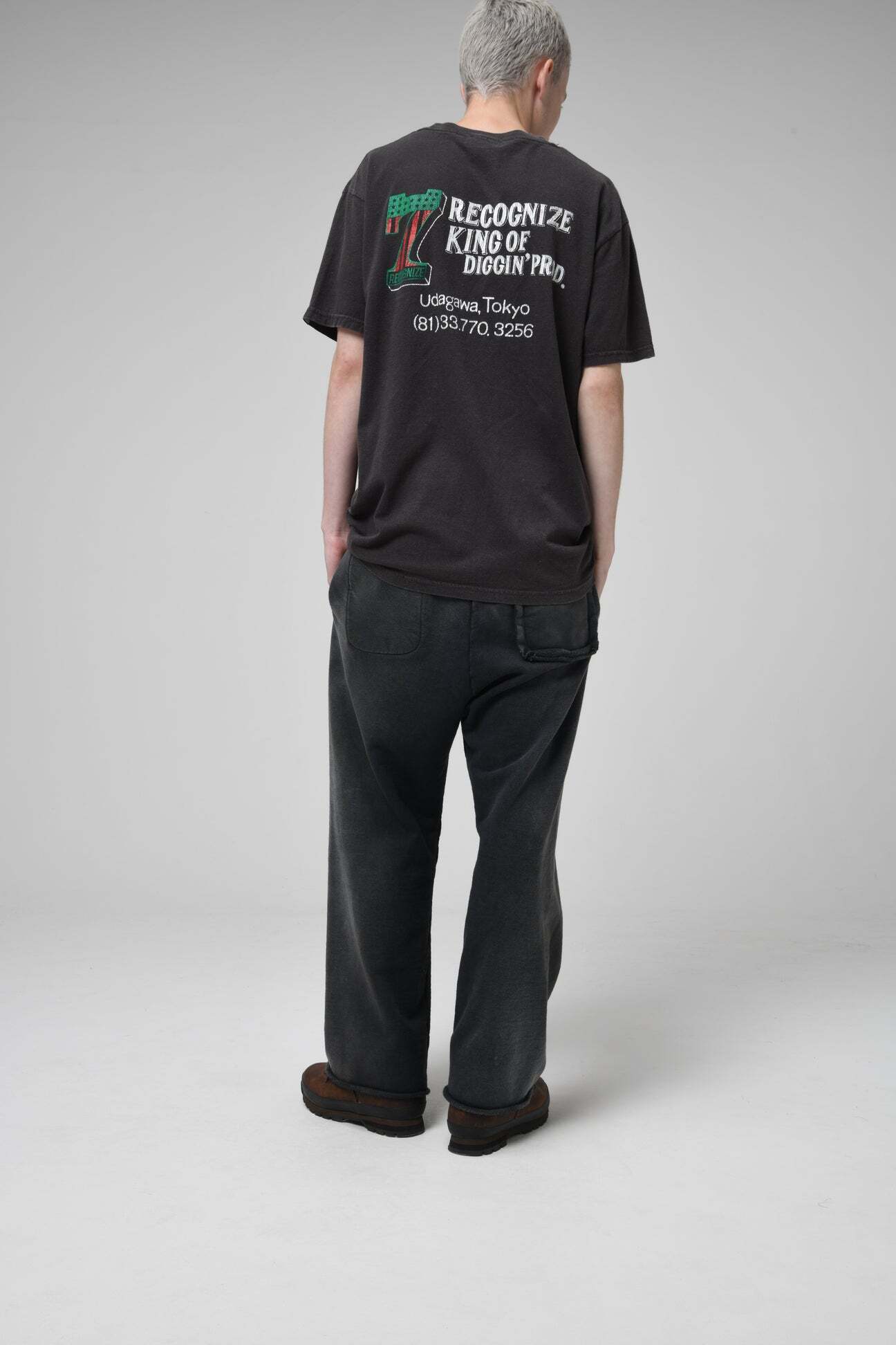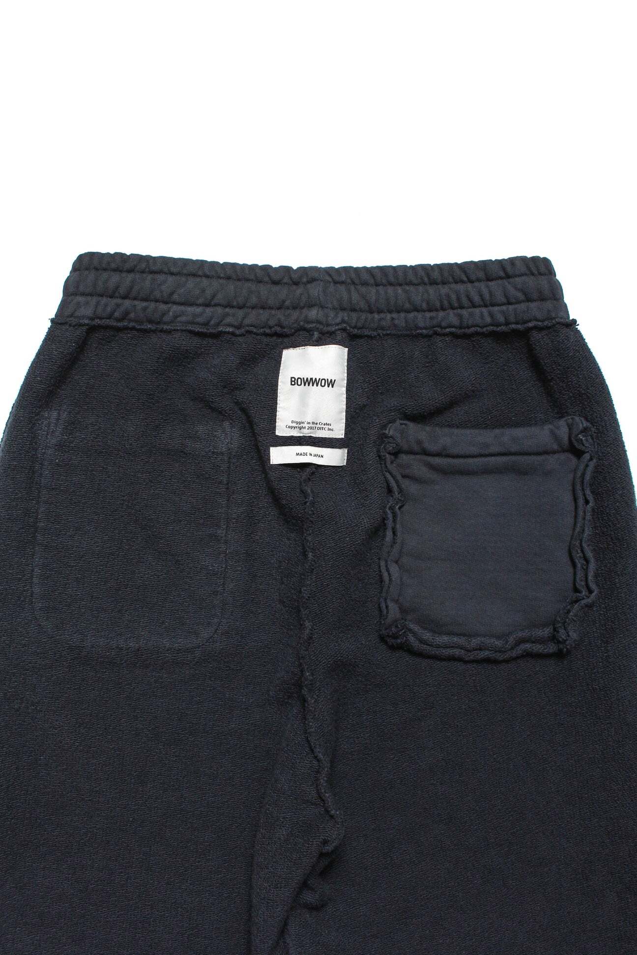 DJ MUROプロデュースのRECOGNIZEとのコラボレーションアイテム。No.1ロゴを7インチレコードを意味する「7」と、MUROのイメージカラーであるアフリカンアメリカンフラッグ配色で構成している。 SAVAGE時代のショップウェアをイメージした世界観を落とし込み、リアルな時代感を表現。 起毛無しの厚地裏毛を使用したスウェットパンツに、BOW WOWが得意とするリアルなヴィンテージ加工を重ね、長年穿き込まれてきたような表情に仕上げている。股上を深く取ったスラックスライクなシルエットと、切りっ放しの裾が古いスウェットの空気感を残している。