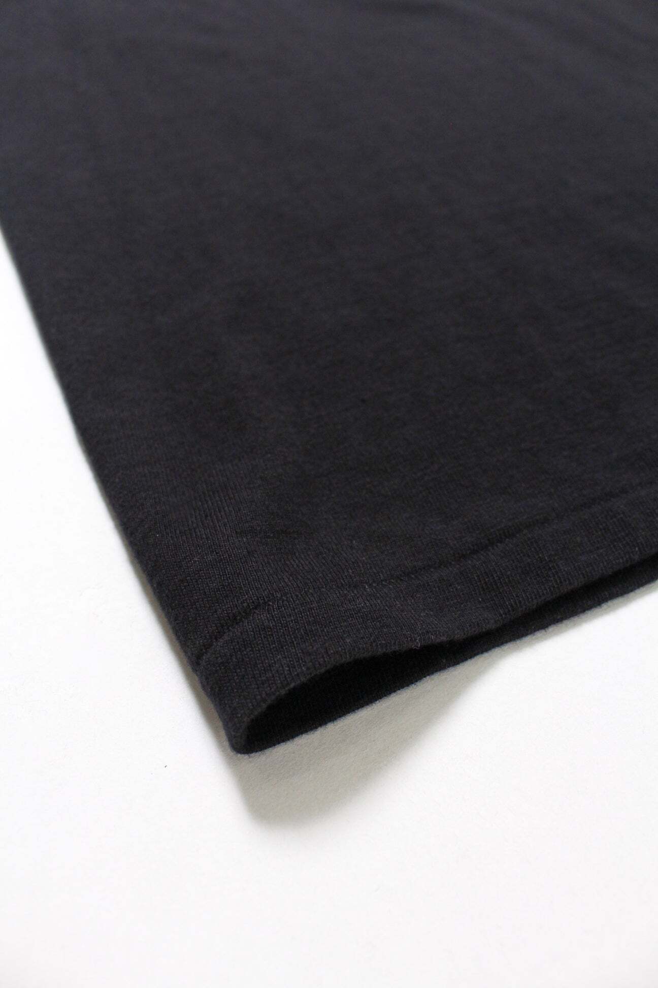 Designed from the reference of an 1980s 12% rayon / 88% cotton short-sleeve T-shirt, reflecting the era’s priorities—comfort, drape, lightness, and fluidity—through a tubular-body construction. The refined, urban mood unique to rayon blends is expressed as a modern product. A tubular body circumference reaching 60 cm is extremely difficult to mass-produce in Japan today, and that volume balance itself becomes part of the product’s character. The ideal silhouette and comfort pursued by this product have reached a finished form. Fabric, sewing, and pattern are built through accumulated dedication that prioritizes completeness over efficiency.