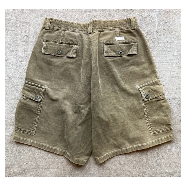 ポロ ラルフローレンのカーゴ コーデュロイショーツです。細畝のコーズ素材にカーゴスタイルというラルフらしい1本です。フロントはスラッシュポケット、バックにはフラップ付きポケットが付属します。カラーもオリーブ系でミリタリー感もあります。