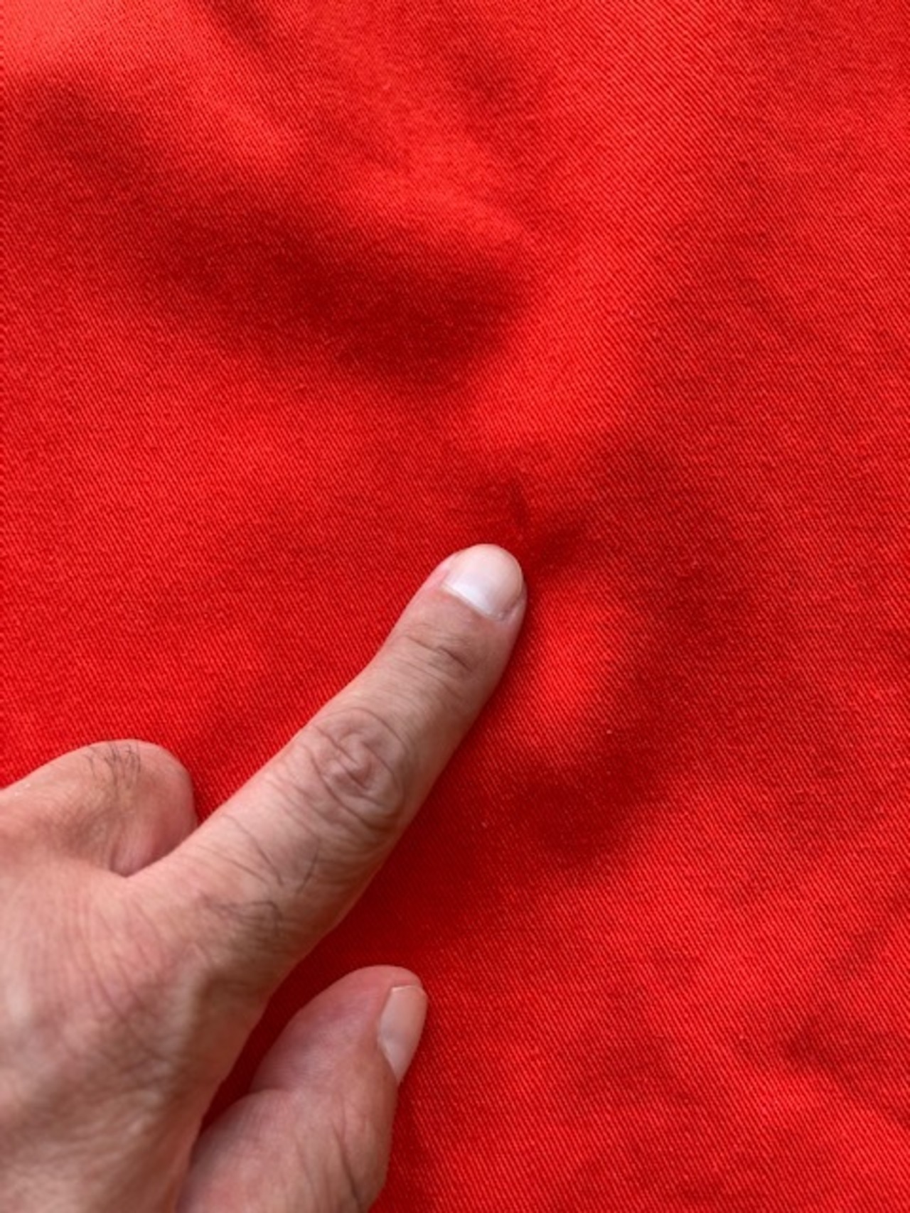 素材はオックスコットン素材。カラーはレッド、アメリカ製です。