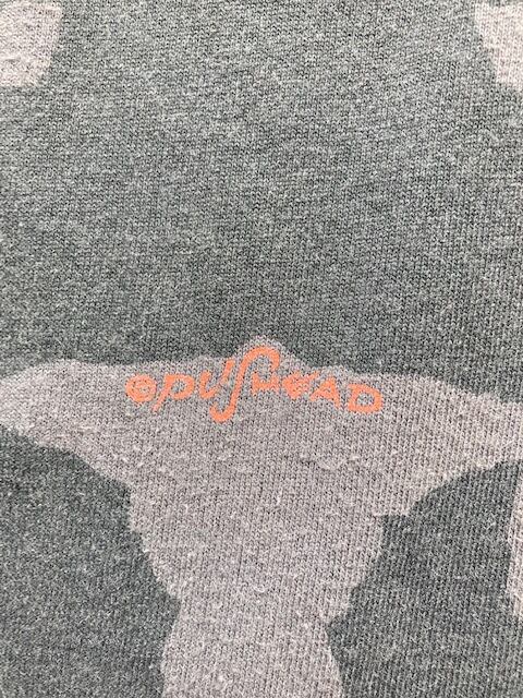 メタリカやミスフィッツなど、またスケートシーンなどの様々なデザインなどを手掛ける”PUSHEAD”。こちらは人気の”黒”スカルプリント。90年代のONIETAボディものコピーライト付きで稀少となり現在も価格高騰しています。こちらはTULTEXボディとなりますが、同じく稀少な1枚です。黒の文字内にパスヘッドの代名詞のスカルがデザイン。