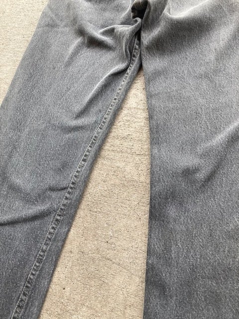 1994年製リーバイスの501-0658 先染め ブラックデニムです。昨今一気に価格高騰している先染めブラックデニムです。後染めとは異なり、緯糸が白糸仕様となります。こちらはすでに全体に色落ちもありヒゲなどのエイジングは多くは求められないですが、非常に雰囲気の良い1本かと思います。裾もパッカリングも出ており◎です。