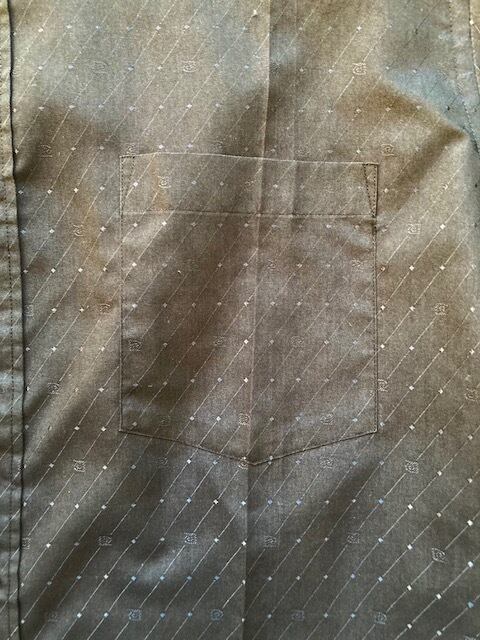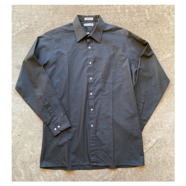1950年創業の老舗ブランド、ピエールカルダンの長袖シャツです。ブラックベースにさりげなく柄が配された1枚です。裾はラウンドでなく、スクエアタイプとなっており、背面はリメイク?かと思われるプリーツが入り、ややシェイプしたシルエットになっています。