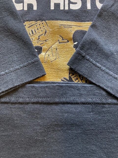 アメリカ製のボディを使用し、縫製はメキシコですので、当時ならではのフェード感も出ている1枚です。プリントはラバープリント。袖、裾ともにダブルステッチです。