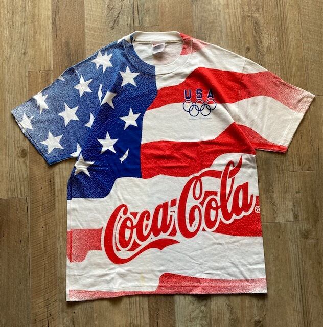 星条旗柄をオーバープリントしたコカ・コーラTシャツ。