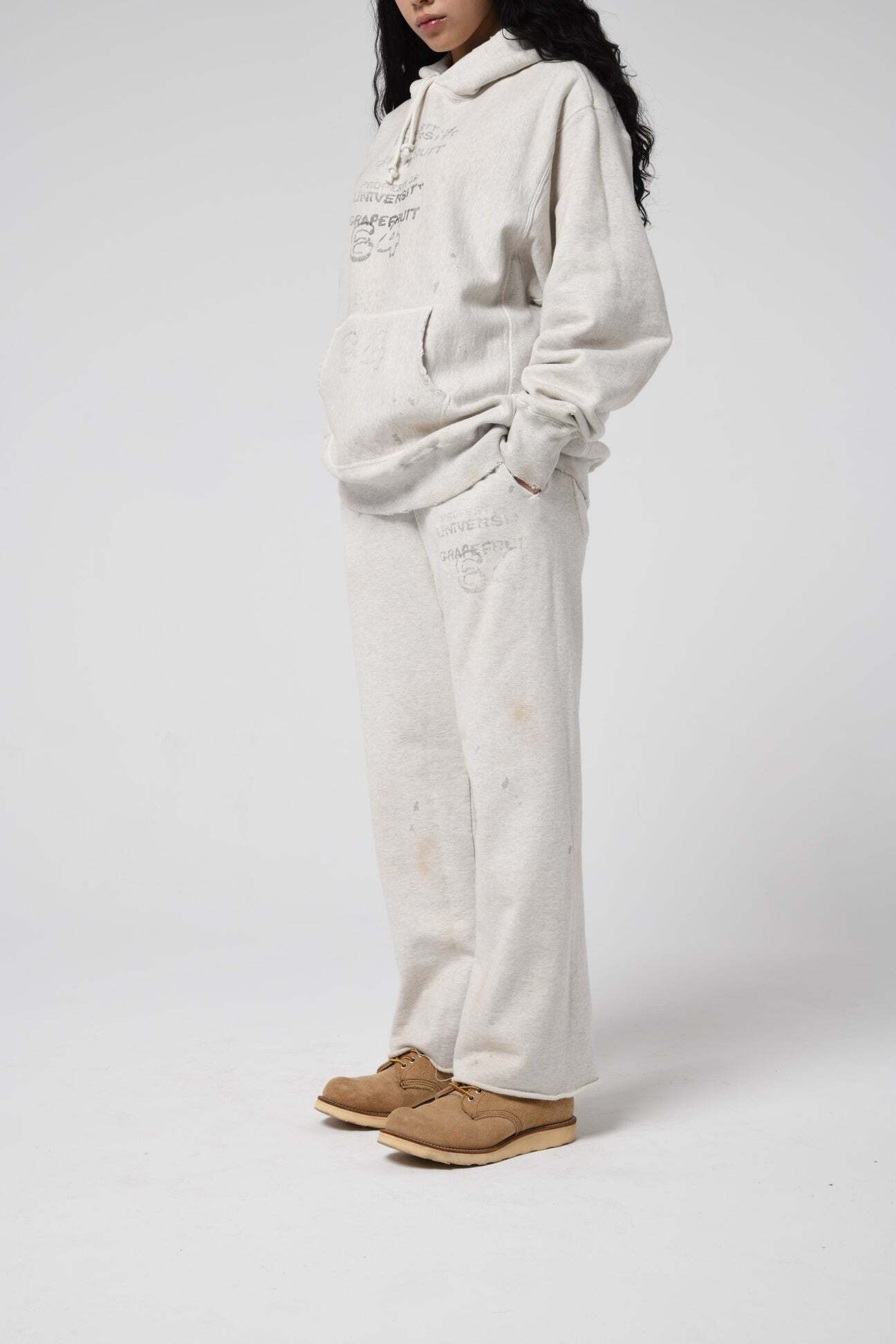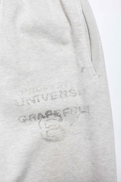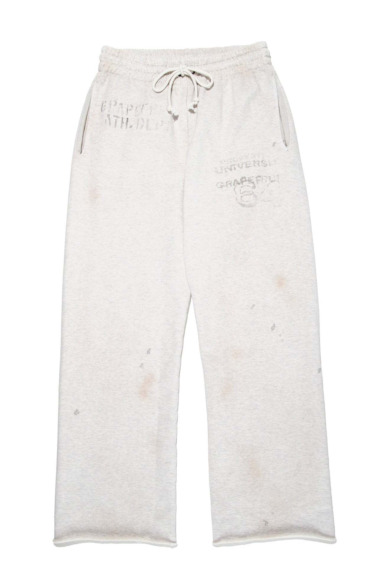 グレープフルーツ大学のアスレチックで使われるスウェットパンツをBOWWOWの真骨頂でもあるステンシルと汚れ加工で製作。