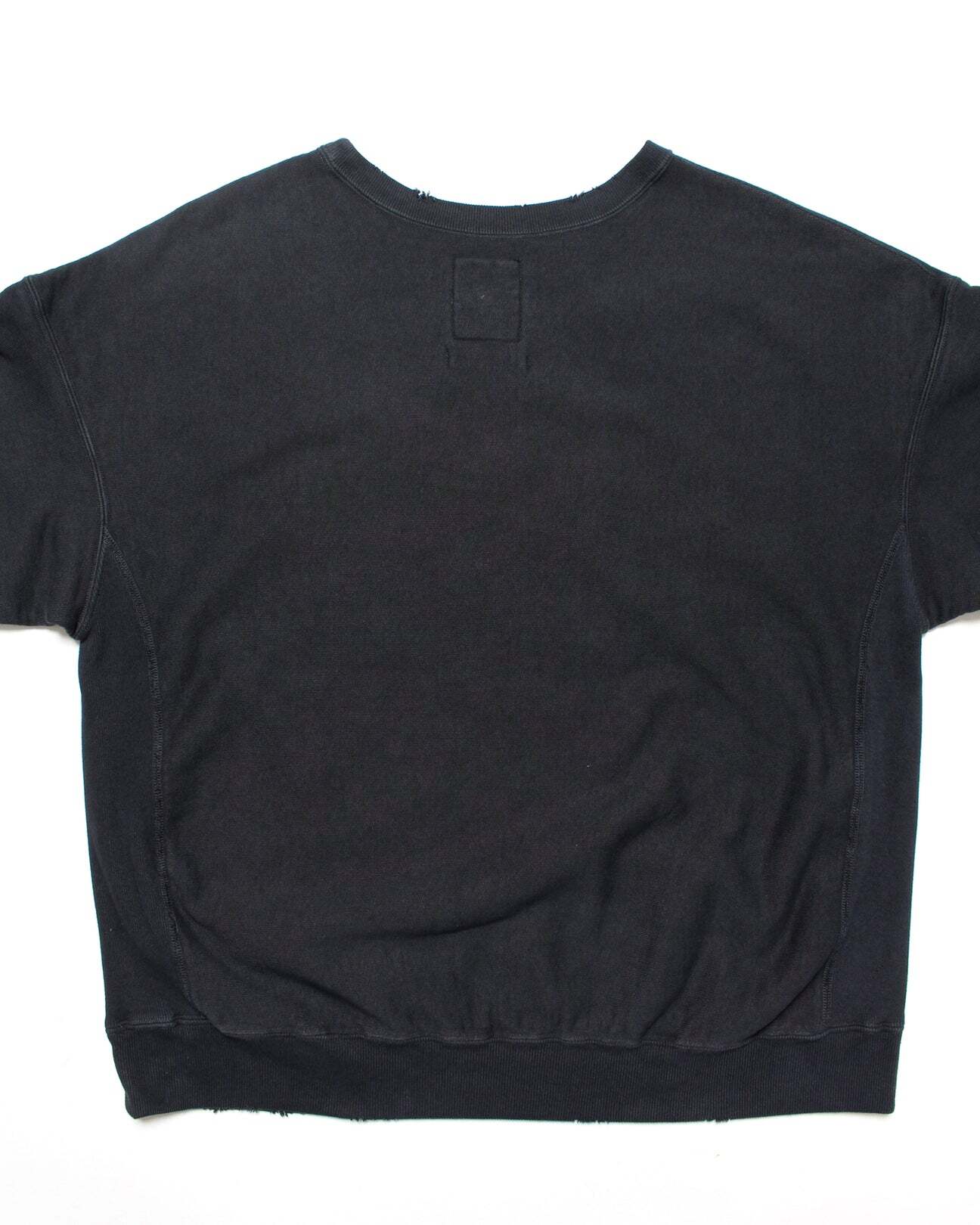 BOW WOWで人気を誇る加工クルースウェットに、ヴィンテージさながらの表情で仕上げた植毛フロッキープリントは、現代では表現の難しいとされる技法であり、特別なオーラを放つ一枚に仕上がった。